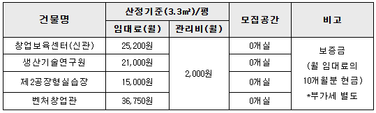 * 입주기간은 중소벤처기업부 창업보육센터 운영요령 제28조에 따름