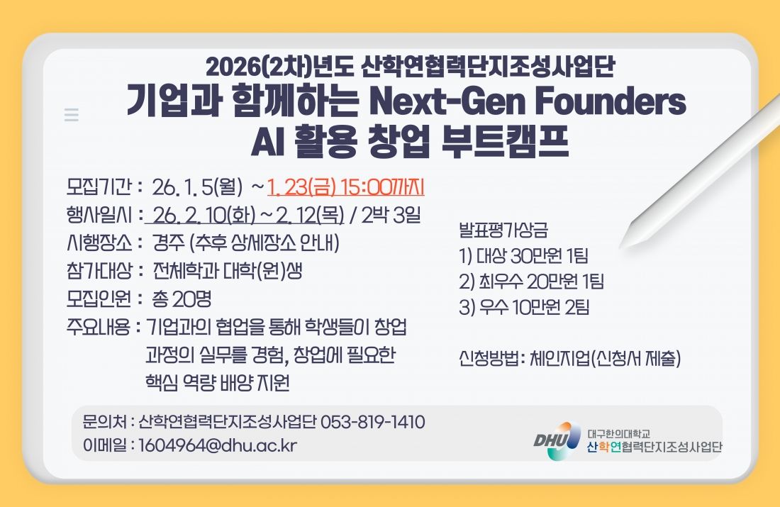 ❍ 모집기간: ~ 2026. 1. 23(금) 15:00까지